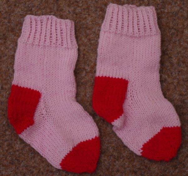 > hergestellt aus 4-fädiger Sockenwolle, > Farbe: rosa-rot > Zusammensetzung: 75% Schurwolle, 25% Polyacryl > waschbar bei 40 Grad > Maximale Fußlänge: 13cm