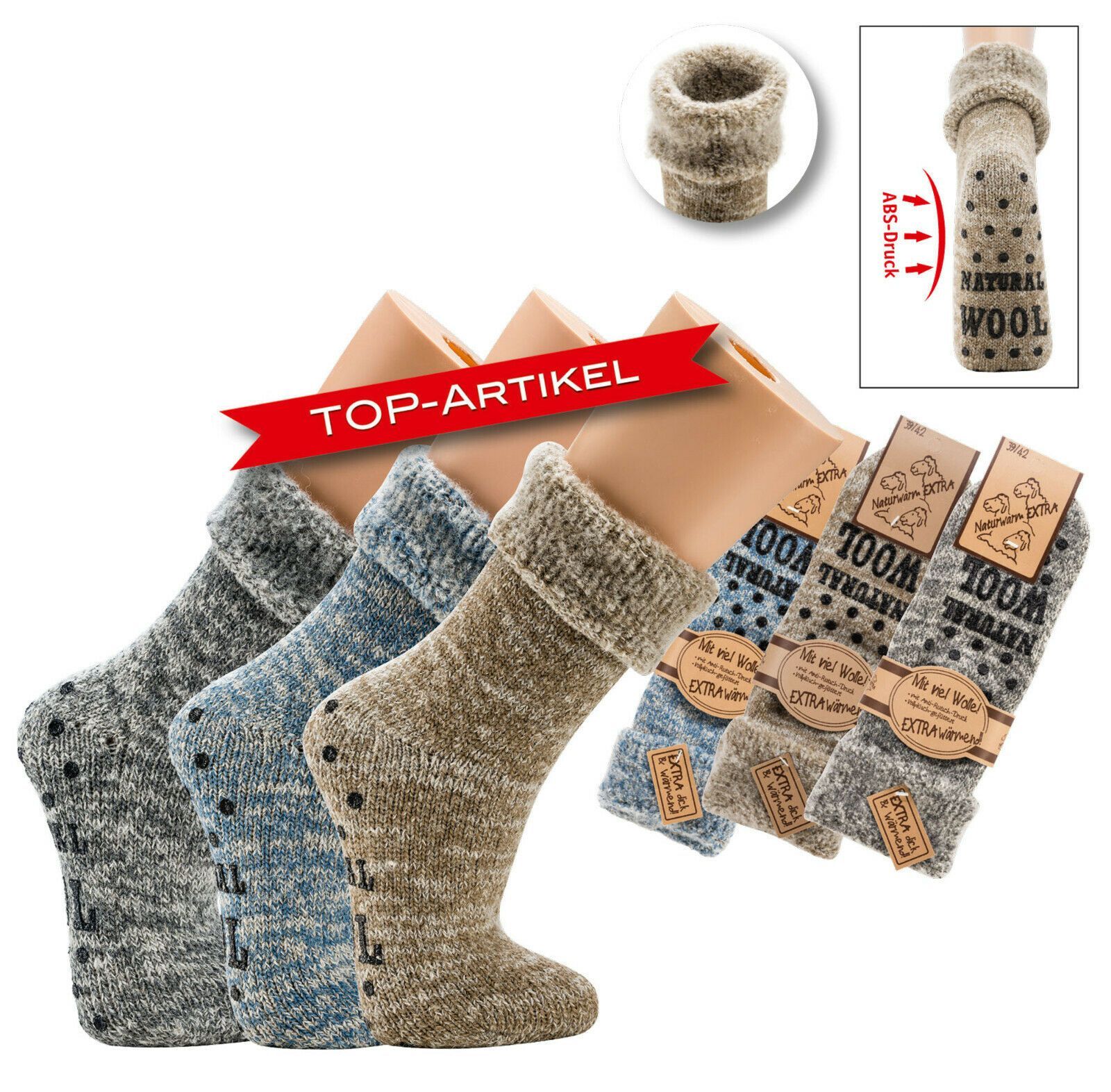 1 Paar MEGA 65% Wolle Thermo ABS Socken Home Socks anti Rutsch Gr.35-50