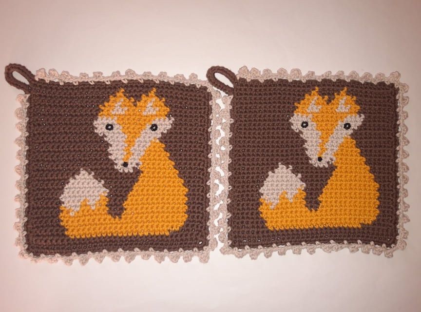 1 Paar Topflappen Fuchs Handarbeit gehäkelt Baumwolle Füchse Tier Waldtier