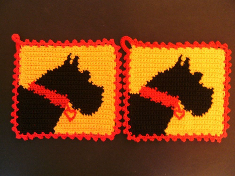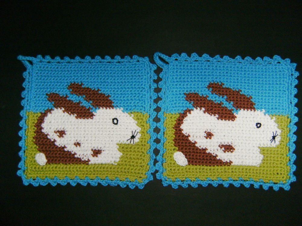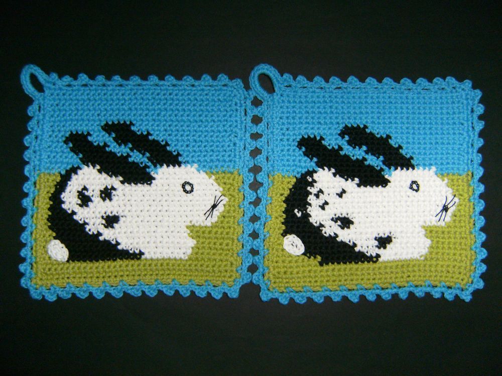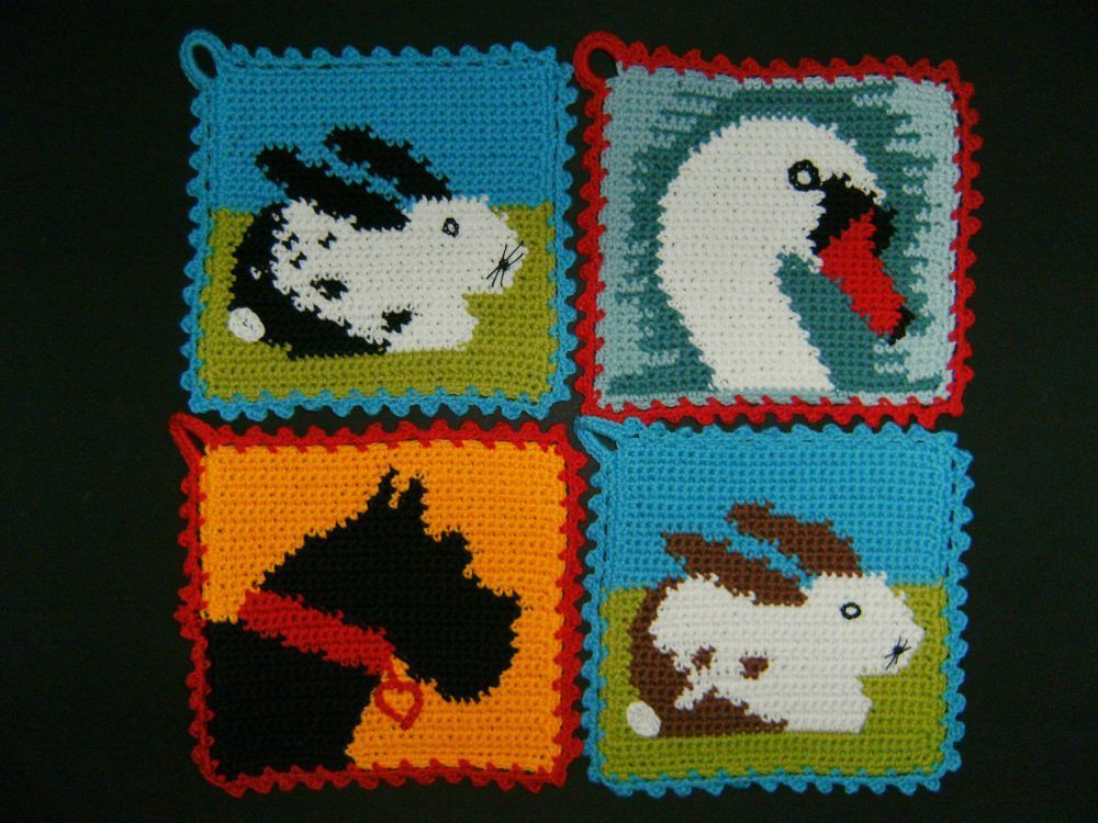 1 Paar Topflappen Tiere Haustiere Hase Schwäne Hunde Handarbeit gehäkelt Baumwolle NW