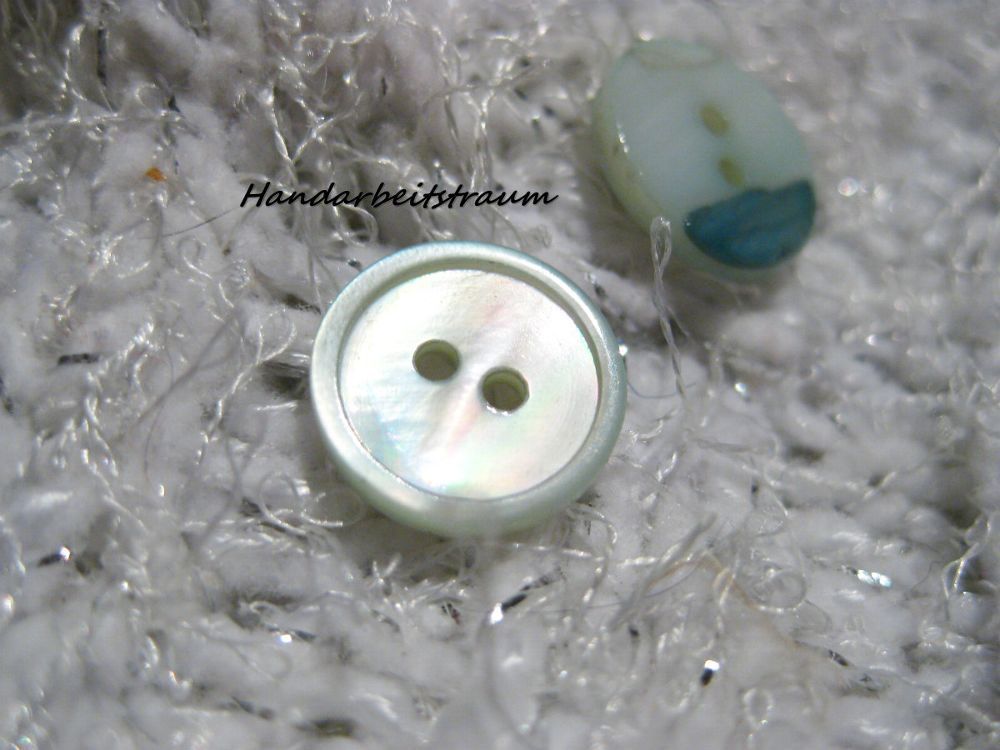 1 Perlmuttknopf hellblau 12x2mm 2 Loch a 2mm Nr 1433