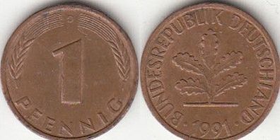 1 Pfennig 1991 "D" BRD / Deutschland / Germany / D