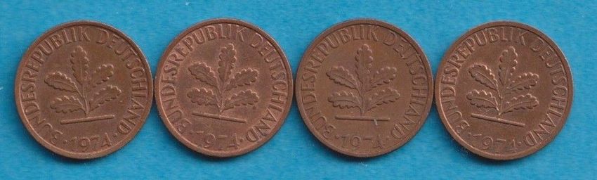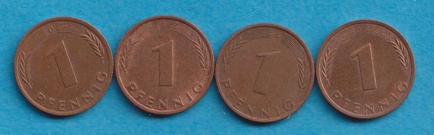 1 Pfennig 1974 D + F + G + J kompl Siehe Bild Beschreibe meine Angebote nach besten Wissen und Gewissen. Der Artikel wird wie beschrieben von Privat verkauft, daher schließe ich eine Gewährleistung Garantie nach den geltenden EU Gewährleistungsrichtlinien für Gebrauchtwaren aus.Verkauf von privat an