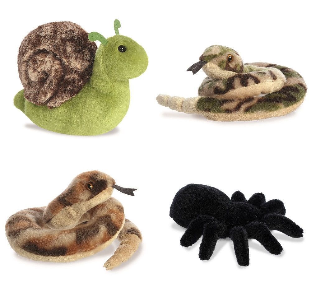 1 Plüschtier Schlange, Spinne, Schnecke, 18cm, Kuscheltiere Wildtiere Tiere Stofftier