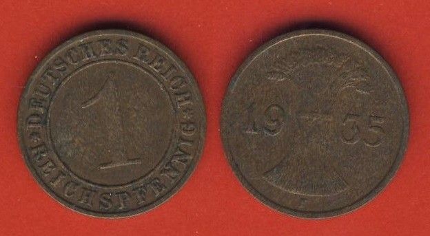 1 Reichspfennig 1935 F Siehe Bild Beschreibe meine Angebote nach besten Wissen und Gewissen. Der Artikel wird wie beschrieben von Privat verkauft, daher schließe ich eine Gewährleistung Garantie nach den geltenden EU Gewährleistungsrichtlinien für Gebrauchtwaren aus.Verkauf von privat an privat, lau