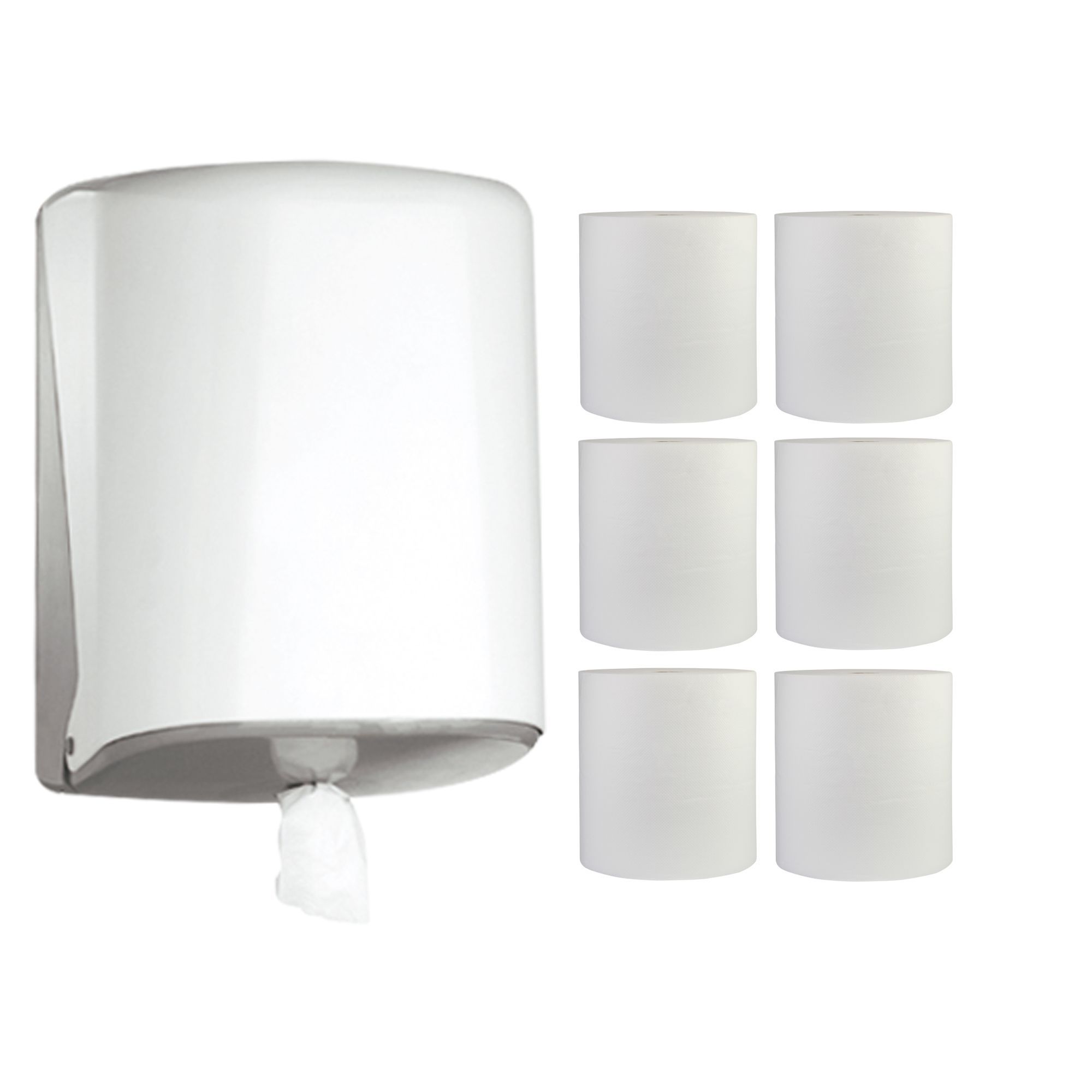1 Rollenhandtuchspender Jofel Azur Weiß + 6 Handtuchrollen Papierspender