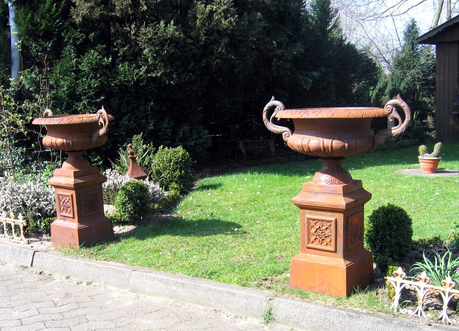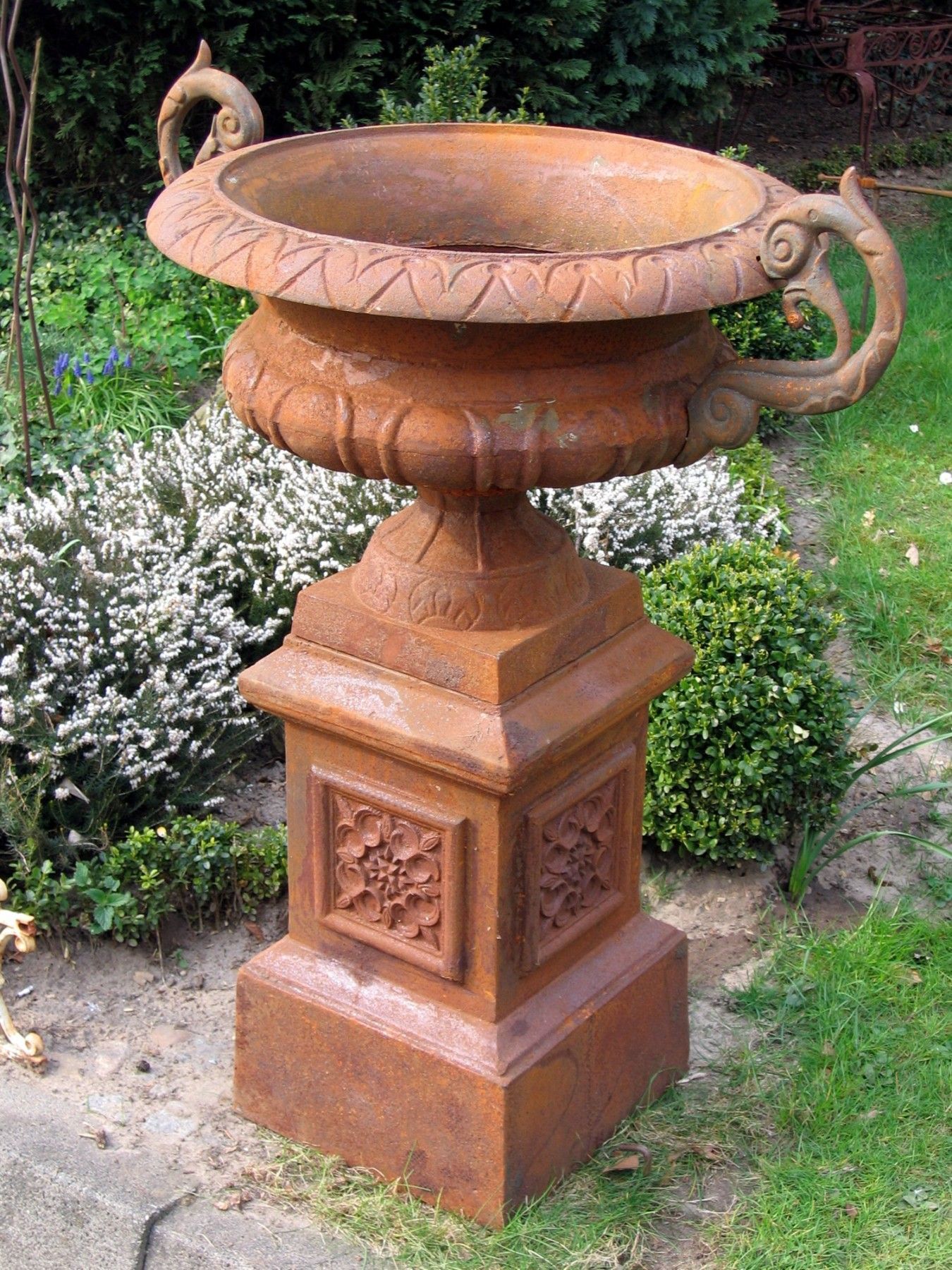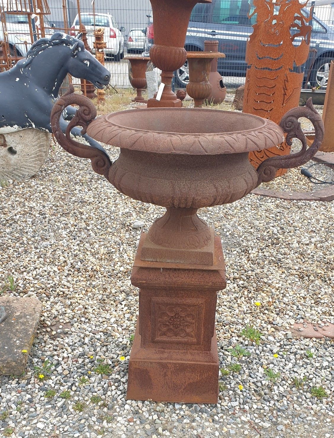 1 Set, Amphore Sockel, Louvre, Vase, Schale, Gusseisen, Pflanzpokal 100cm