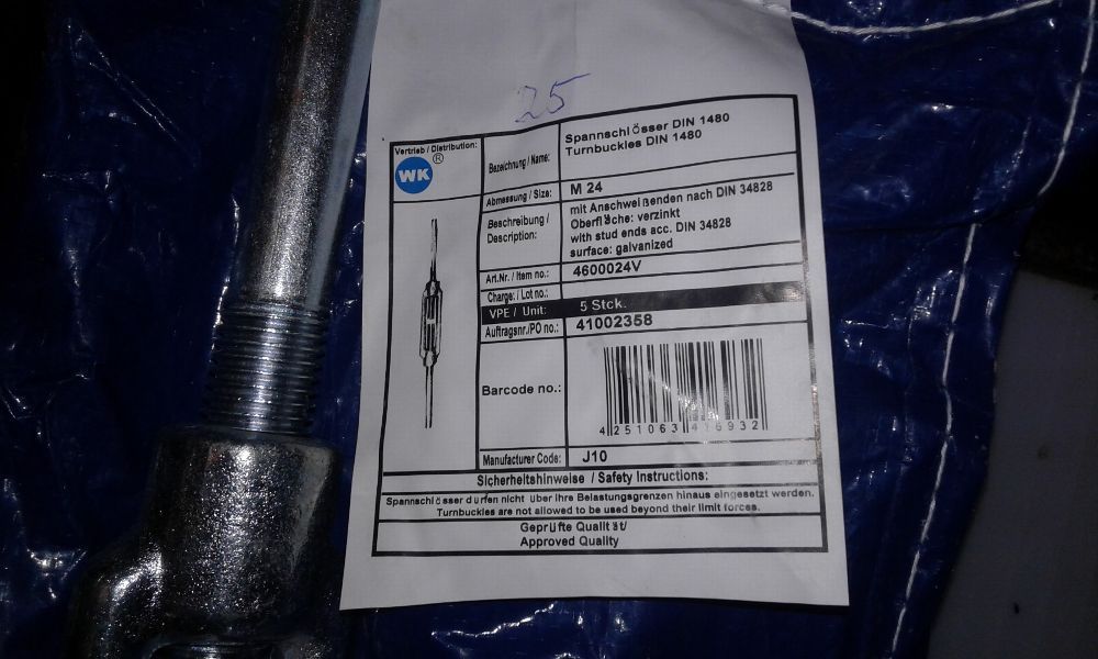 1 St. Spannschloß, M 24 Seilspanner DIN 1480 Spanschl. mit 2 Anschweißenden verz.