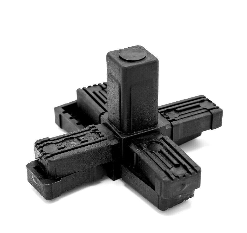 1 Steckverbinder für Quadratrohr, Kreuze mit Abgang, Polyamid, schwarz Maße in mm 1. Maß = Rohraußenmaß 2. Maß = Rohrwandstärke So können Sie selbst stabile Regale bauen ohne zu schweißen. Einfach zugeschnittene Rohre kaufen und mit unseren Steckverbindern zusammenstecken. Die Steckverbinder bestehe