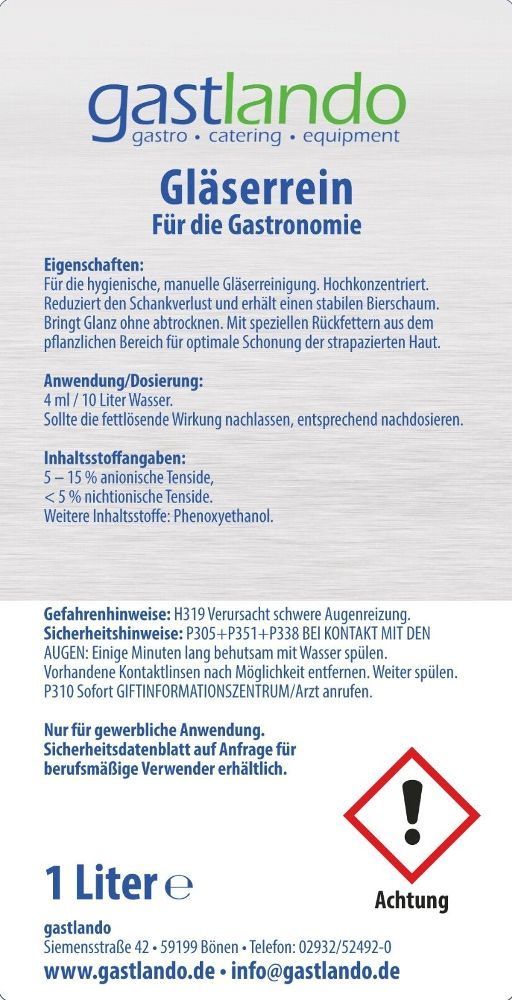 1 Stk Gläserspülmittel Gläserrein flüssig für Gläserreinigung Gewerbe neu