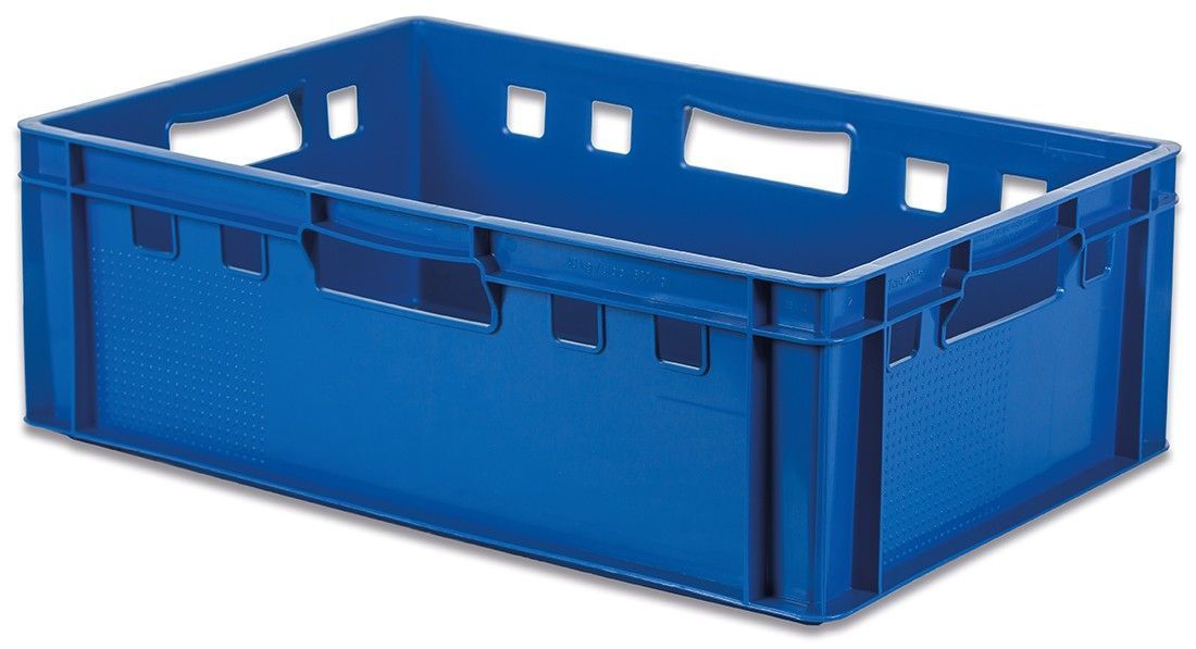 1 Stück Metzgereikiste Blau E2 - Material: Polypropylen (PP) - Innenmaß: 570 x 365 x 190 mm - Außenmaß: 600mm x 400mm x 200mm Volumen: 40 Liter - stapelbarer Aufbewahrungsbehälter mit 2 Transportgriffen - Europastandardmaterial Polypropylen PP - extrem wiederstandsfähiges und elastisches thermoplastisches Copolymer - lebensmittelneutral - geruchs- & geschmacksneutrale Lagerung - resistent gegen Nässe, Insekten & Pilzbefall - geeignet für Hochdruckreinigung (Artikelabbildung ähnlich)