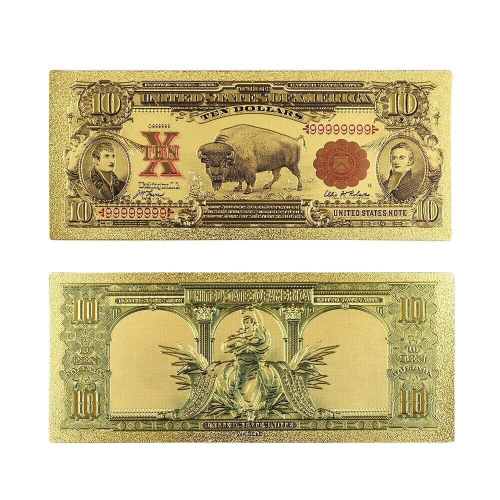 1 Stück 10 Dollar von 1901 - 24 K vergoldete Banknote USA (CM1802)