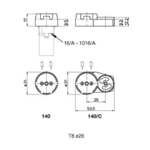 --> --> --> Produktbeschreibung Aufsteckfassung T8 - G13 - 26mm, T110 2A - 250V Gehäuse aus Polycarbonat in weiss Steckkle