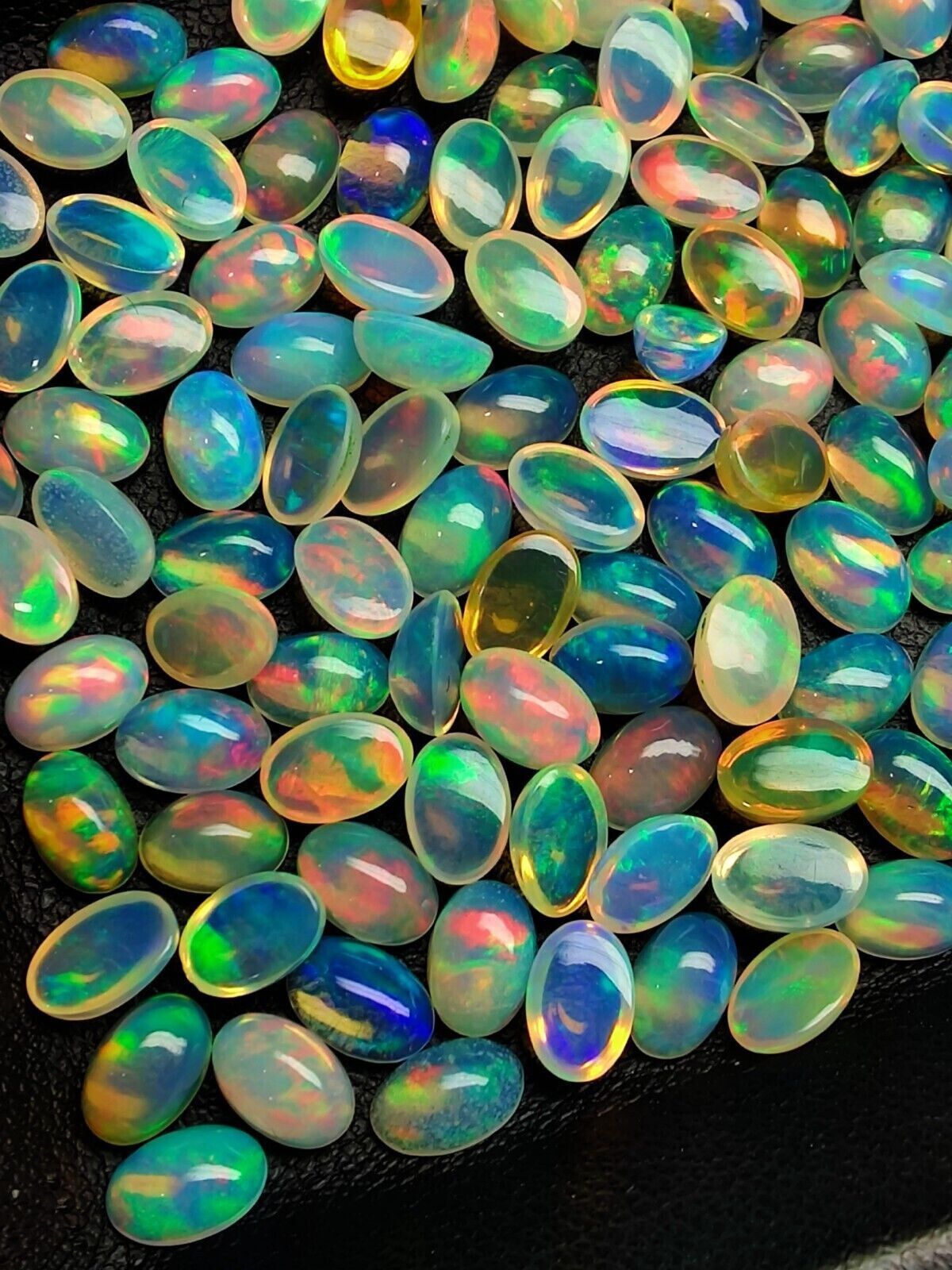 Natürliche multicolore ovale Welo Opal Cabochone 1 Stück Maße: ca. 5 x 7 mm Ideal als Geschenk und für die Schmuckherstellung geeignet!! Herkunft: Äthiopien Farbabweichungen können jederzeit durch die Vergrößerung der Bilder vorkommen Die Auswahl wird von mir gemacht!!! Als Heilstein soll der Opal R