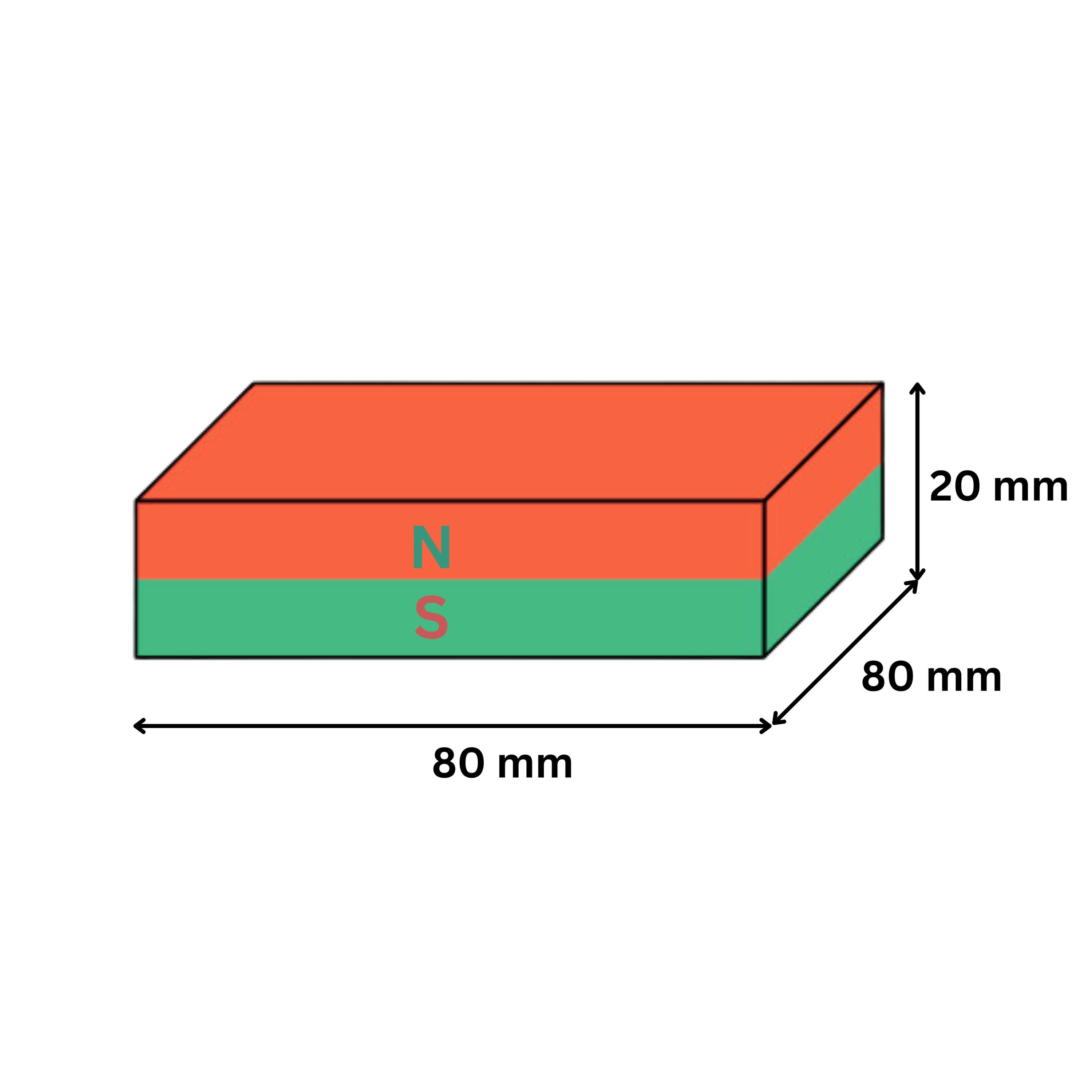 1 Stück Neodym Magnet 80mm x 80mm x 20mm - N38 Supermagnet - Quadermagnete - Hohe Haf