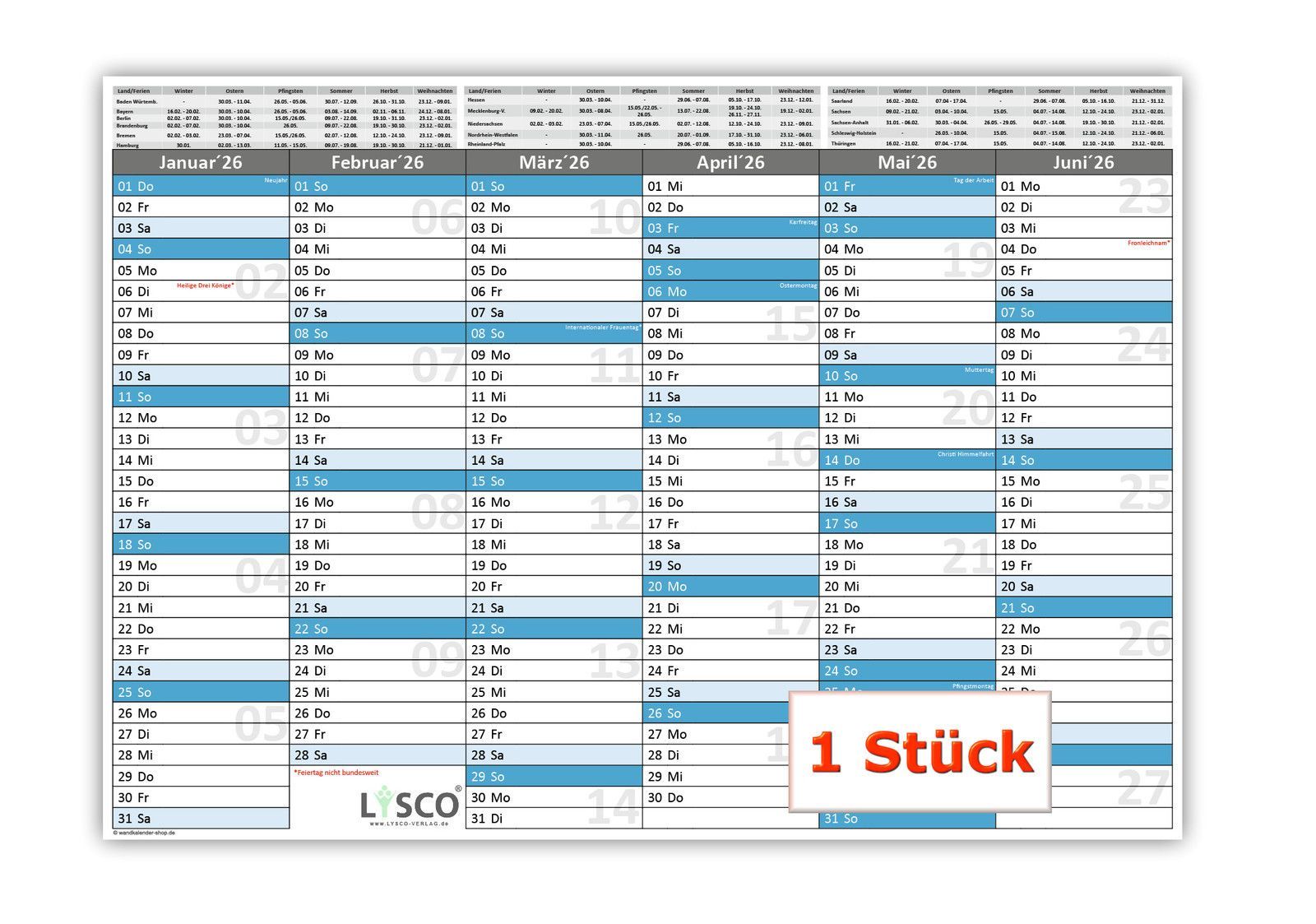 1 Stück - Tafelkalender DIN A4 2026 blau, 300g BD Papier gut beschreibbar