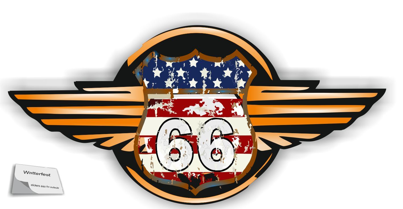 1 Stück US Route 66 Retro Aufkleber Größenangabe: 10x10cm, 15x15cm, 20x20cm, 30x30cm, 40x40cm Lieferumfang: 1 Stück US Route 66 Aufkleber in Ihrer gewünschten Größe Die Aufkleber werden mit ECO Solvent Tinte bedruckt und maschinell ausgeschnitten, sie sind Wetterfest sehr gut klebend und lassen sich