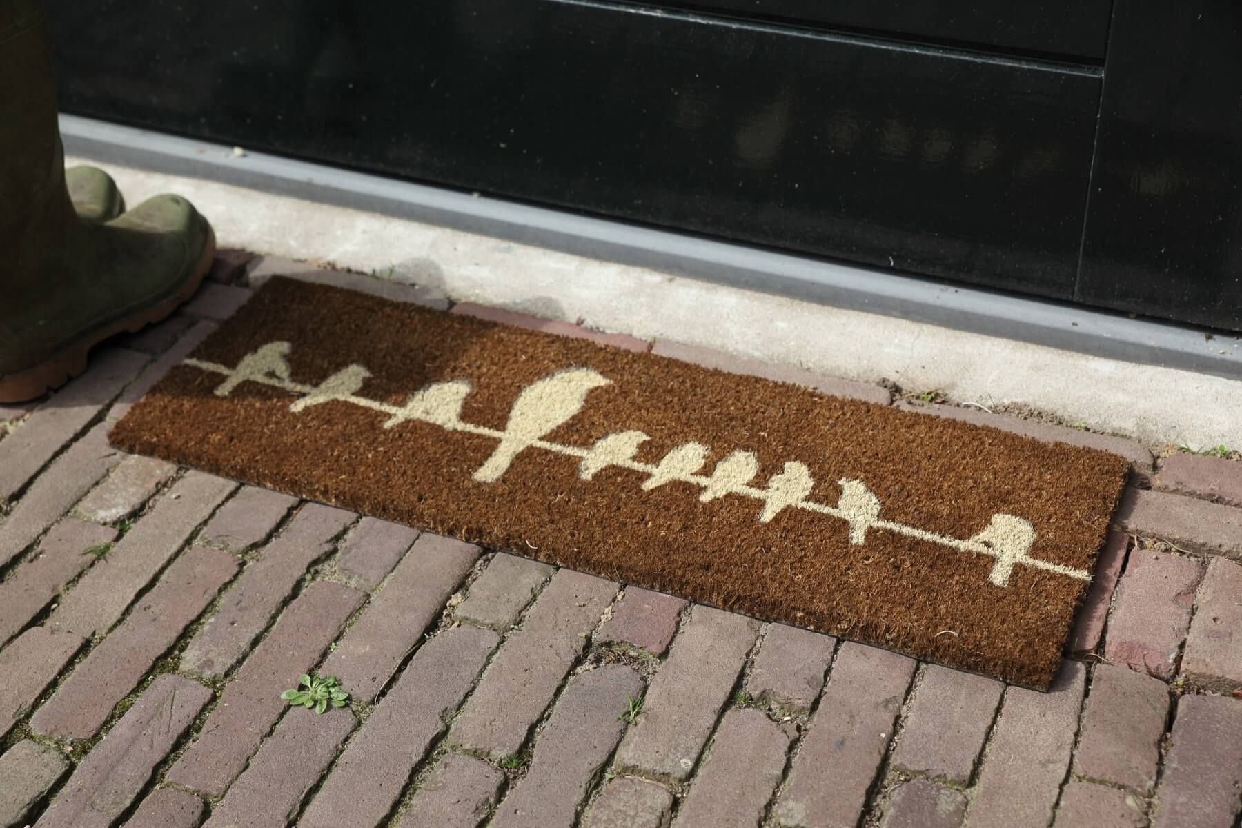 Esschert Design 1 Stück VÖGEL AUF DRAHT Fußmatte Türmatte Fussabtreter eckig Kokos -sortiert