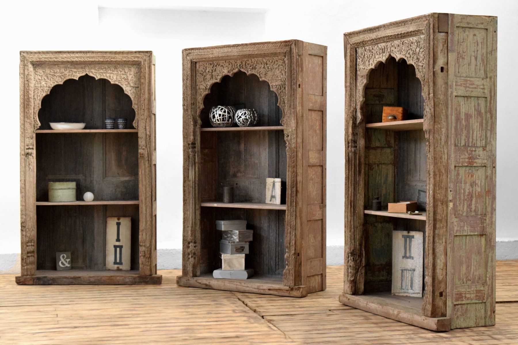 1 von 3 großes Regal Antik Shabby Indien Landhaus Vintage Alt Bücherregal Holz Teak