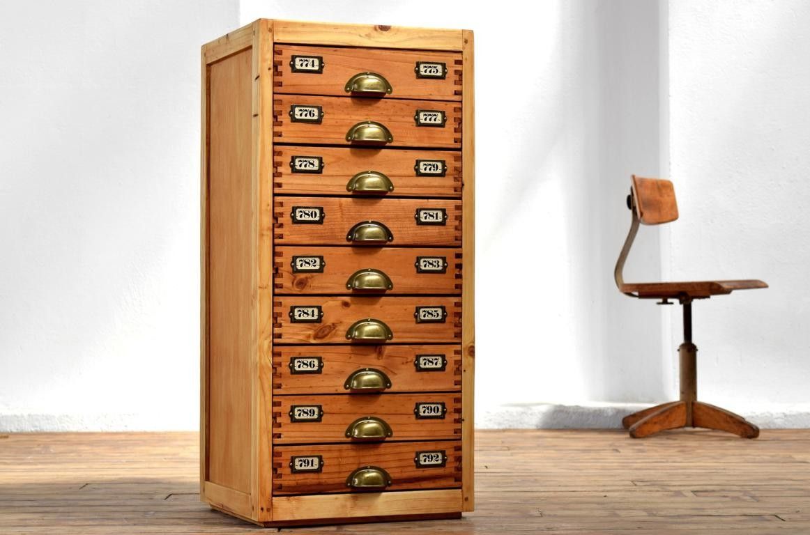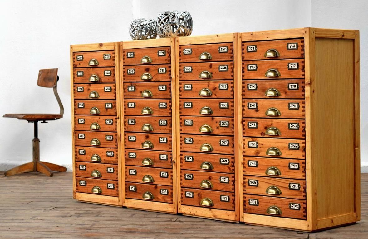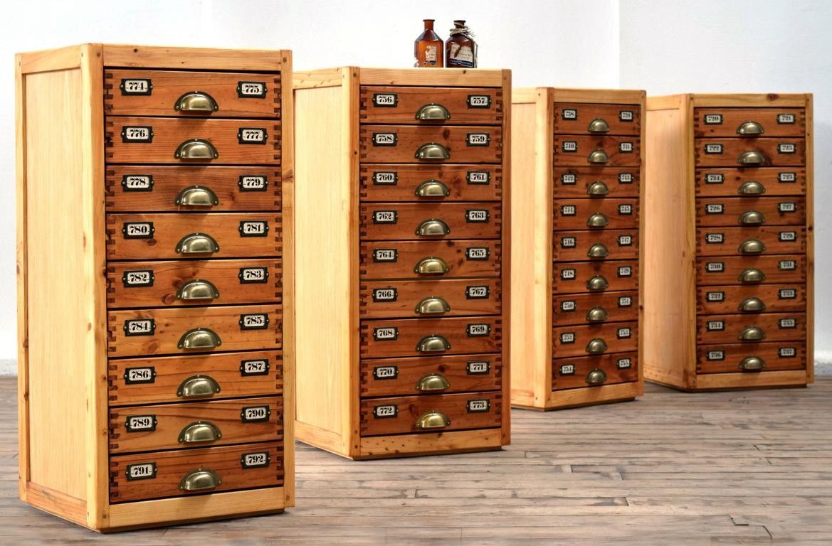 1 von 4 Schubladenschrank Bauhaus Loft Antik Apothekerschrank Holz Vintage Alt Fabrik