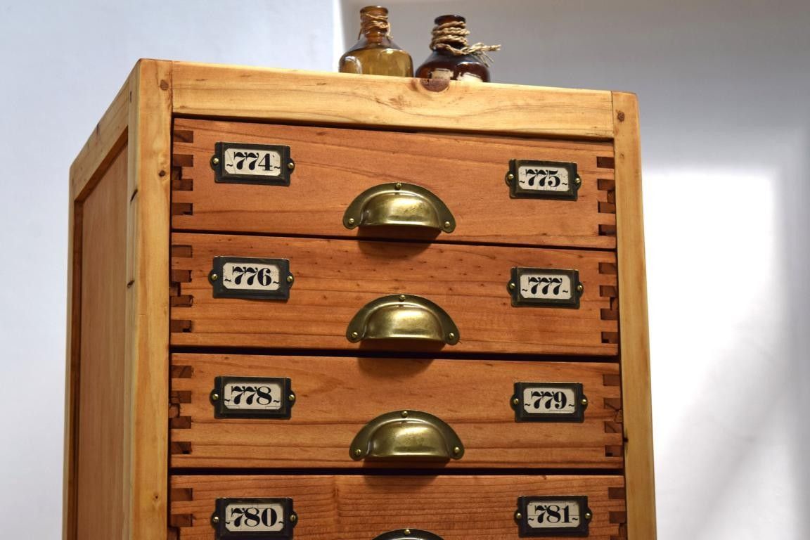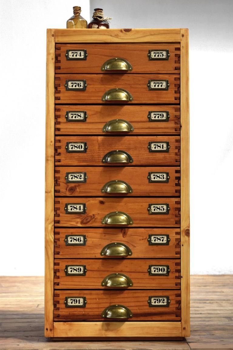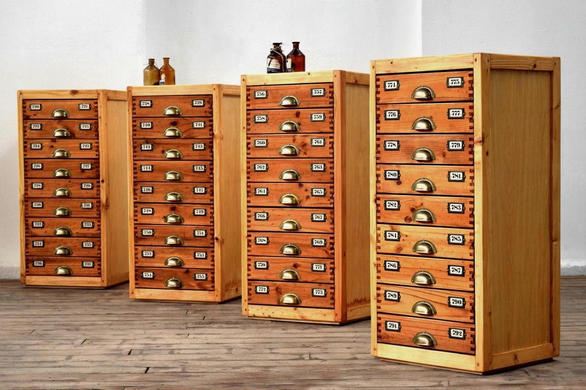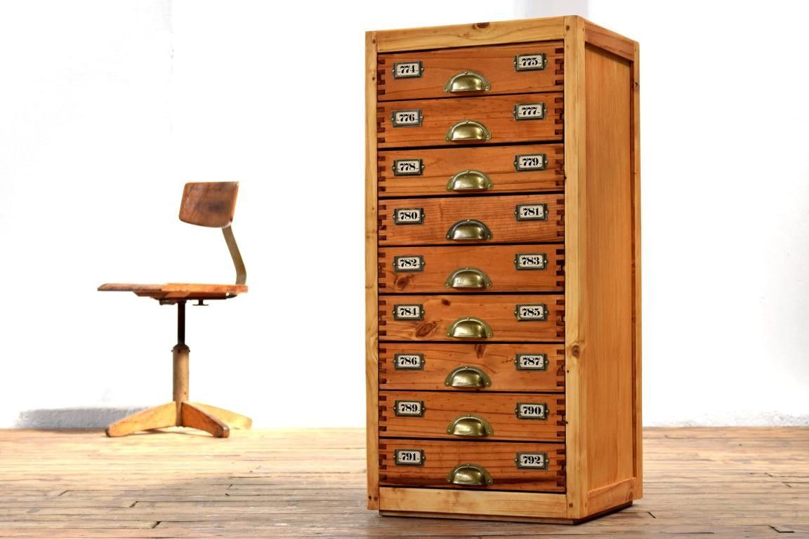 1 von 4 Schubladenschrank Bauhaus Loft Antik Apothekerschrank Holz Vintage Alt Fabrik