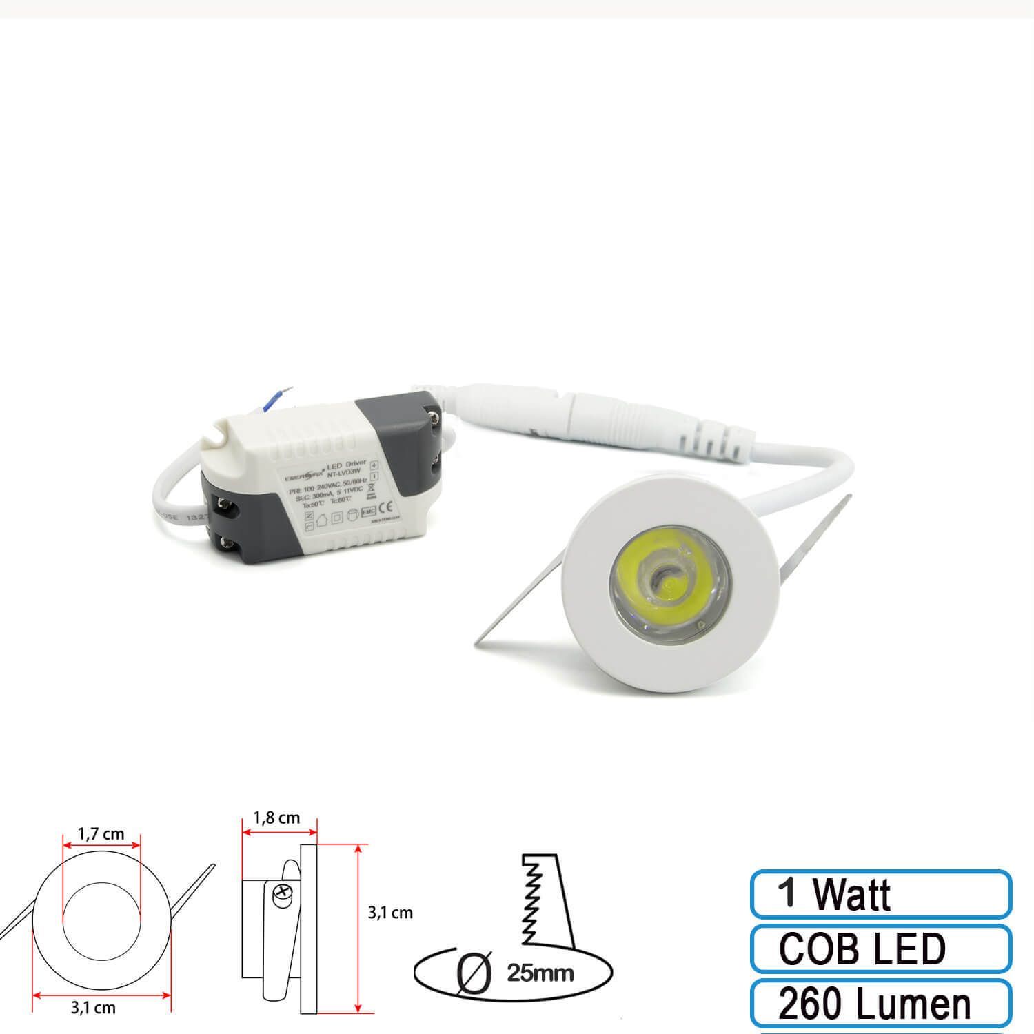 1 W Mini LED Einbauleuchten Rahmen weiß rund inkl. Trafo
