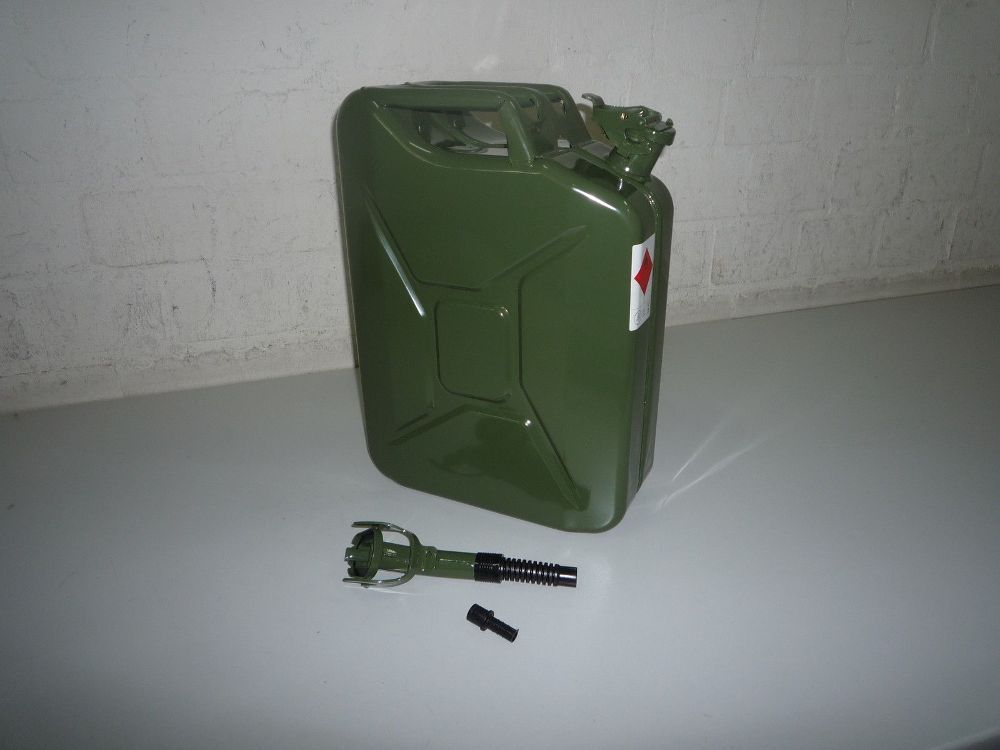 1 x 20 Liter Benzinkanister Metall GGVS mit Sicherungsstift inkl. Auslaufrohr