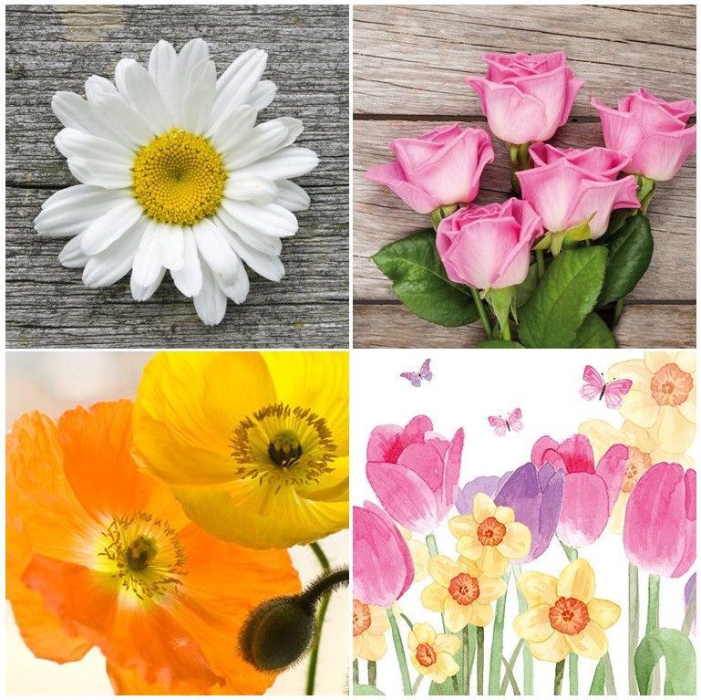 1 x 20 Servietten, Blumen, Rosen Mohn Tulpen, 33 x 33 cm Papierservietten Blume