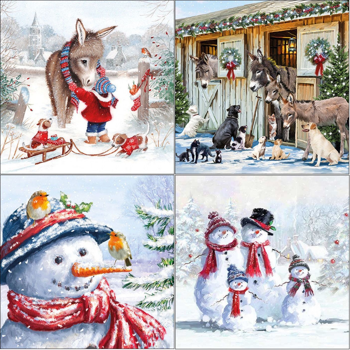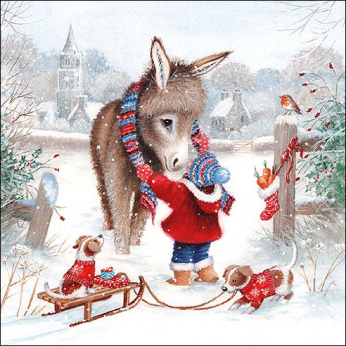 1 x 20 Servietten Winter 33 x 33 cm, Schneemann Esel Tiere Papierservietten Hund