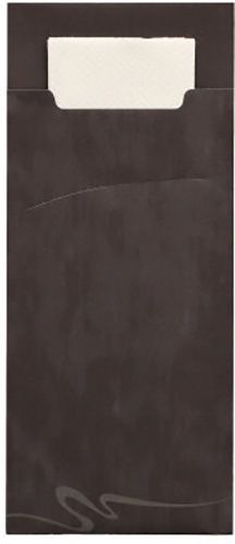 • Europochette Schwarze Bestecktasche mit weißer Serviette (Box 500) (500 Stück)