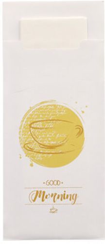 PAPSTAR 1 x 520 Bestecktaschen 20 cm x 8,5 cm weiss "Good Morning" inkl. weißer Serviette