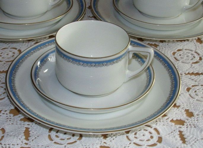 1 x Rosenthal Isolde Kaffee-Gedeck Art Déco je 3-tlg. Gold-/ Blau-Ornament-Rand