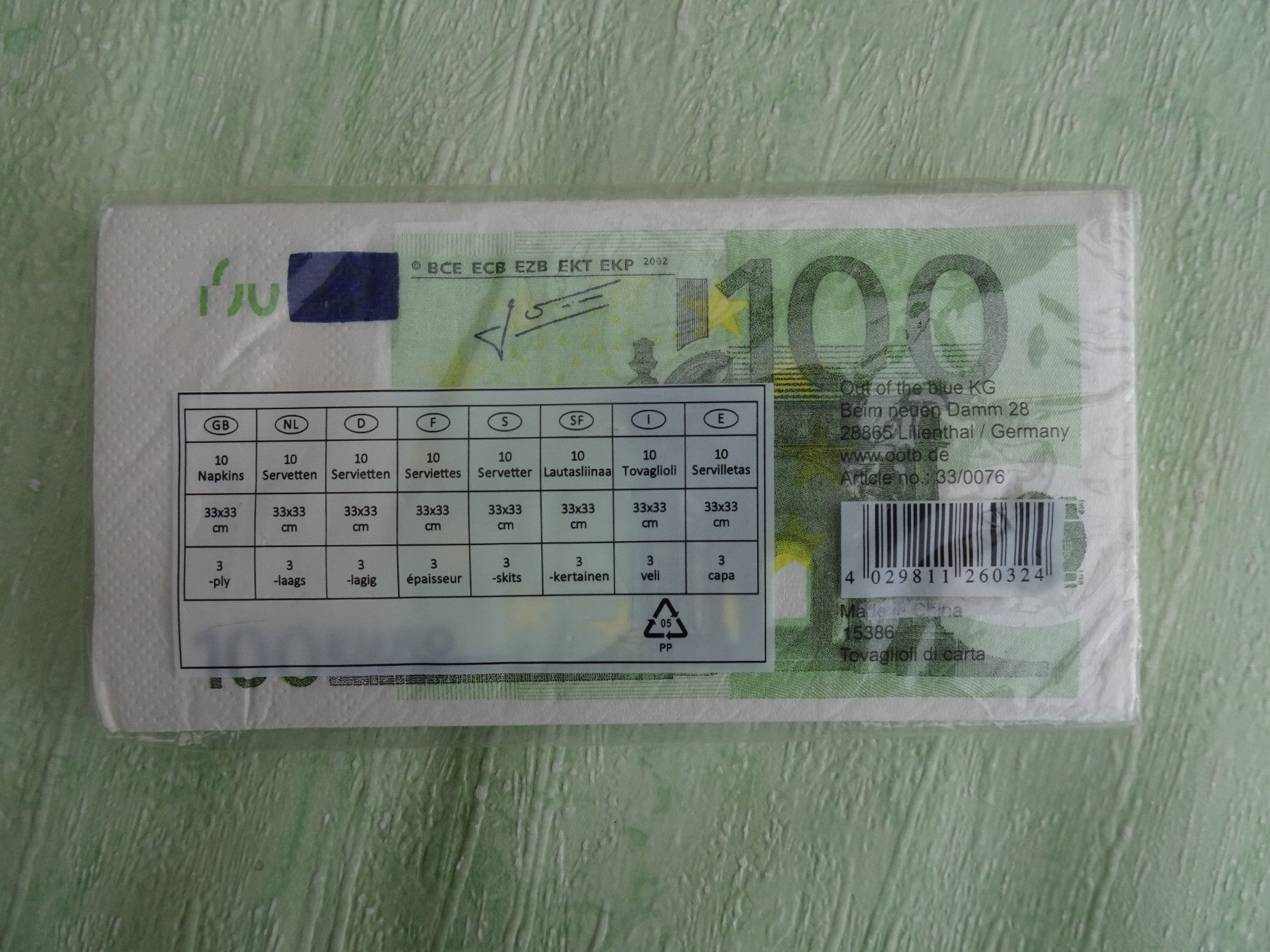 1 x Serviette 100 Euro