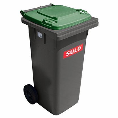 Sulo 1 x SULO Mülltonne Abfalltonne Müllbehälter 120 Liter Grau mit Grünem Deckel NEU