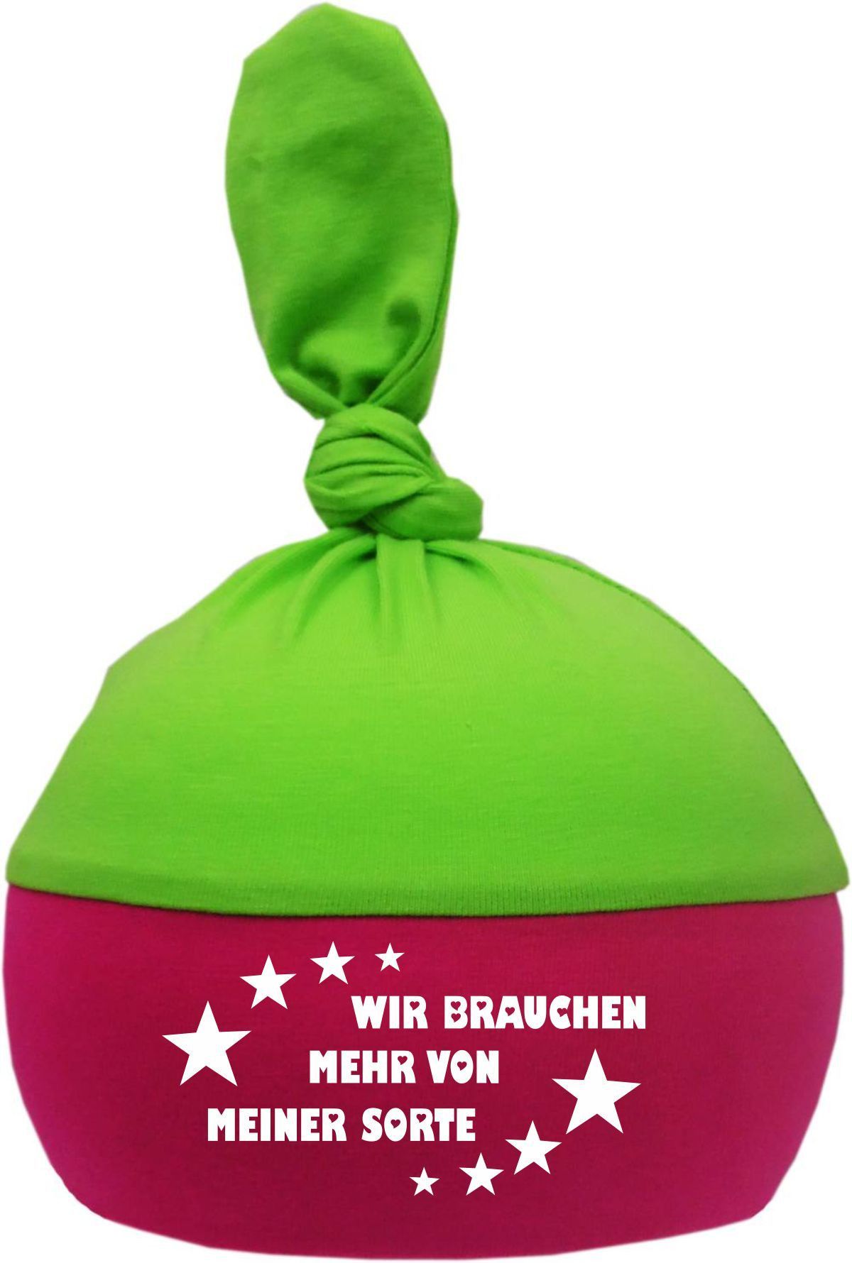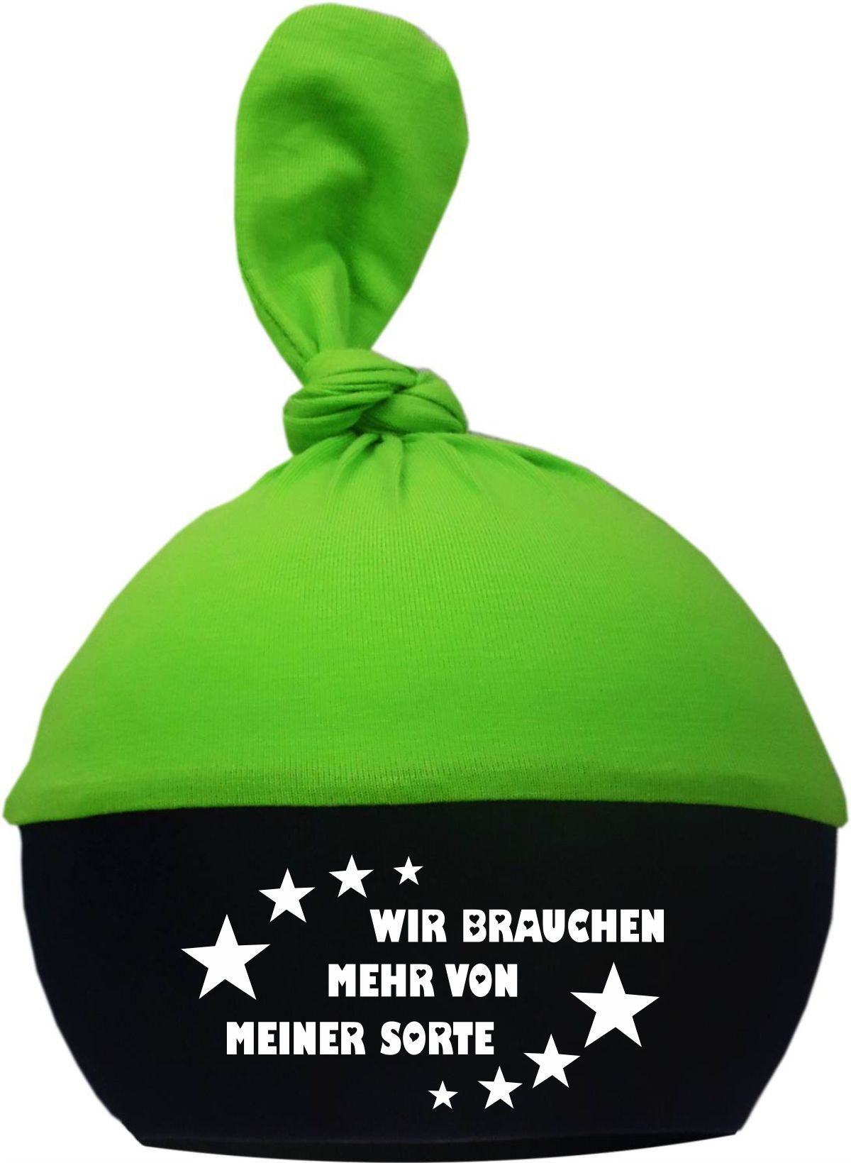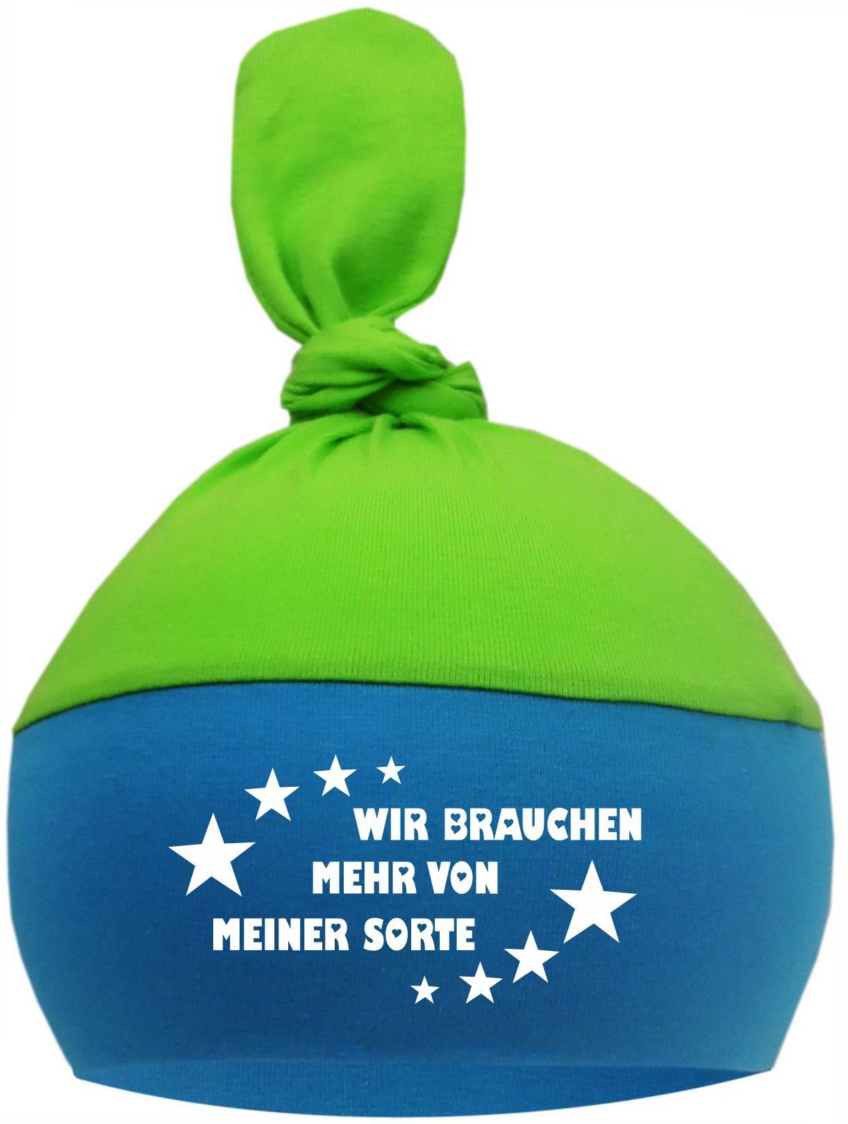 1-Zipfel Baby Mütze Multicolor mit Wir brauchen mehr von meiner Sorte