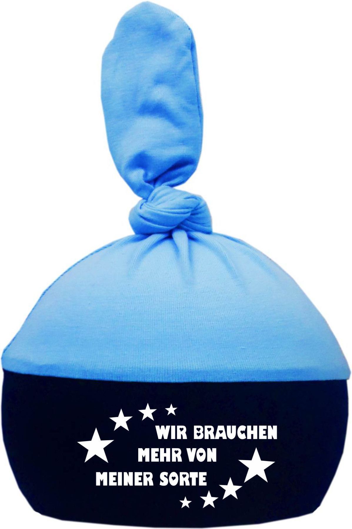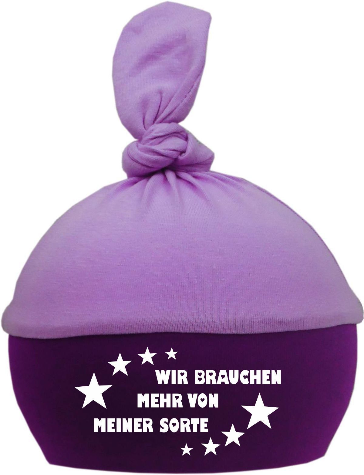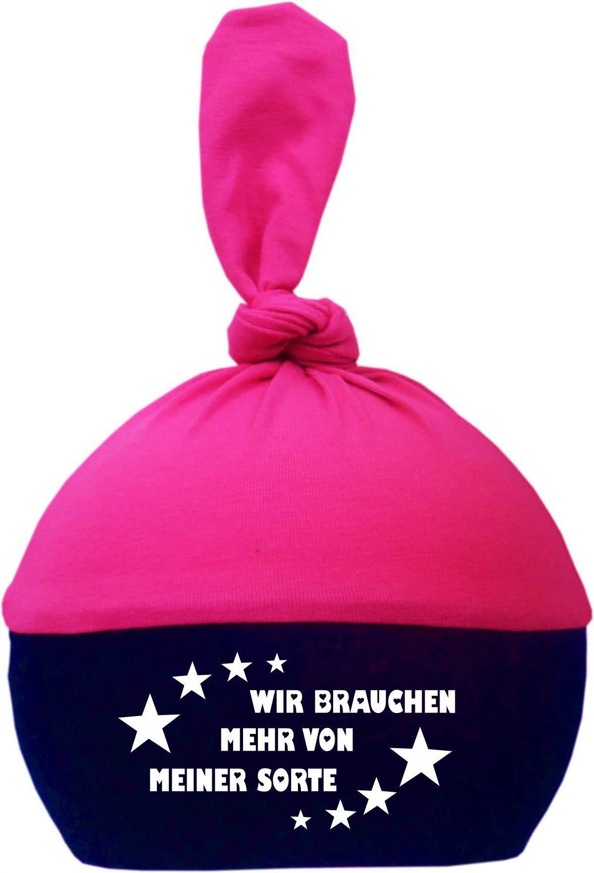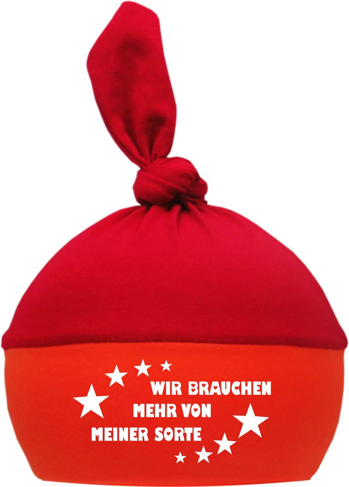 1-Zipfel Baby Mütze Multicolor mit Wir brauchen mehr von meiner Sorte