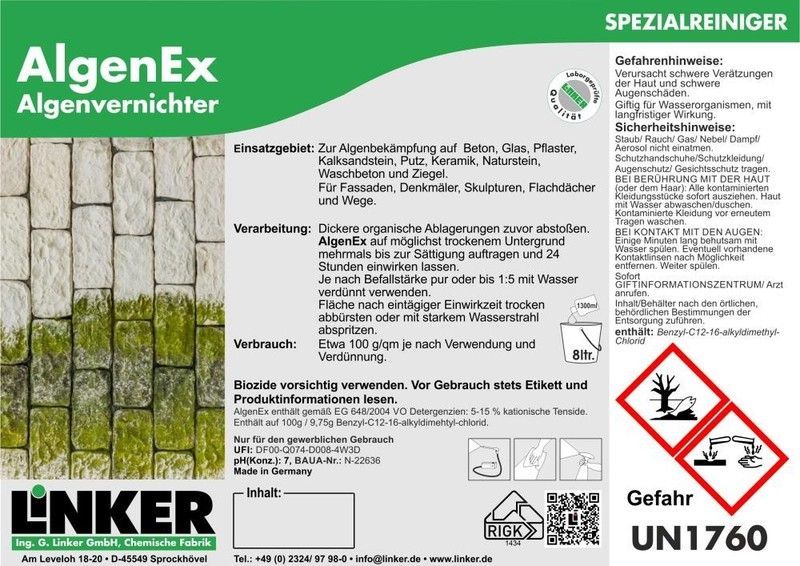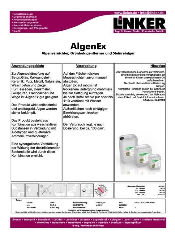 10,1 l Algen Ex Moos Schimmelvernichter Grünbelagentferner Außen Linker Chemie