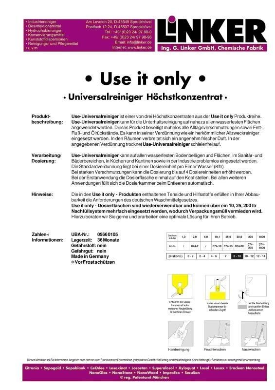 10,1 L Allzweckreiniger Use it only Universalreiniger Linker Chemie