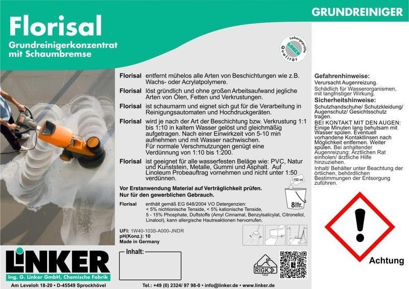 10,1 L Alzweckreiniger Florisal Grundreinigungskonzentrat Linker Chemie