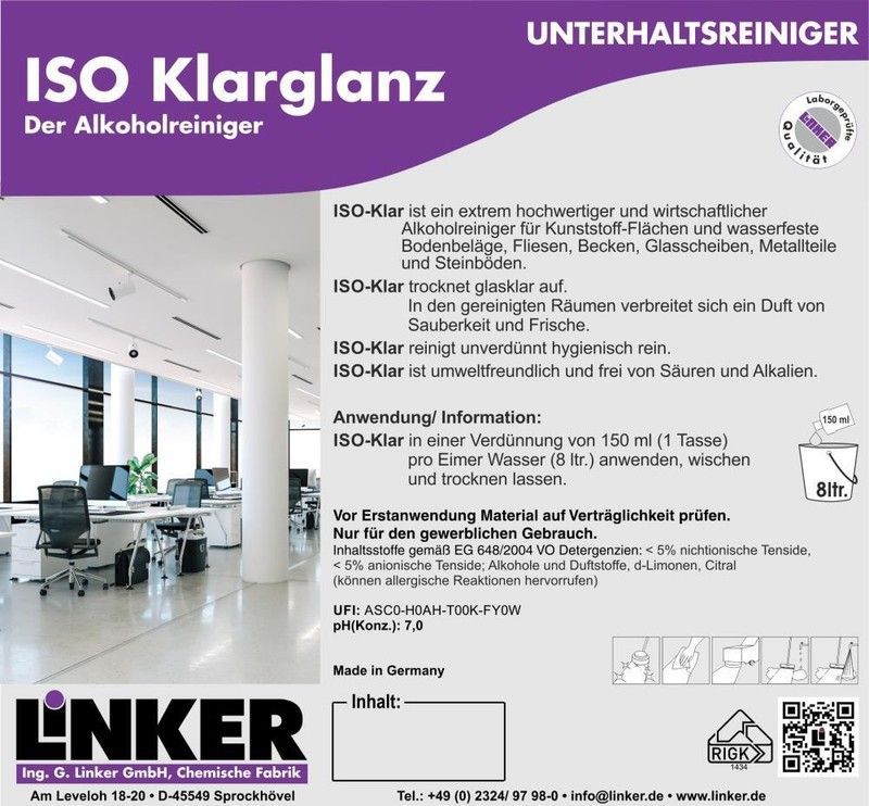 10,1 L Alzweckreiniger ISO Klarglanz Alkoholreiniger Böden