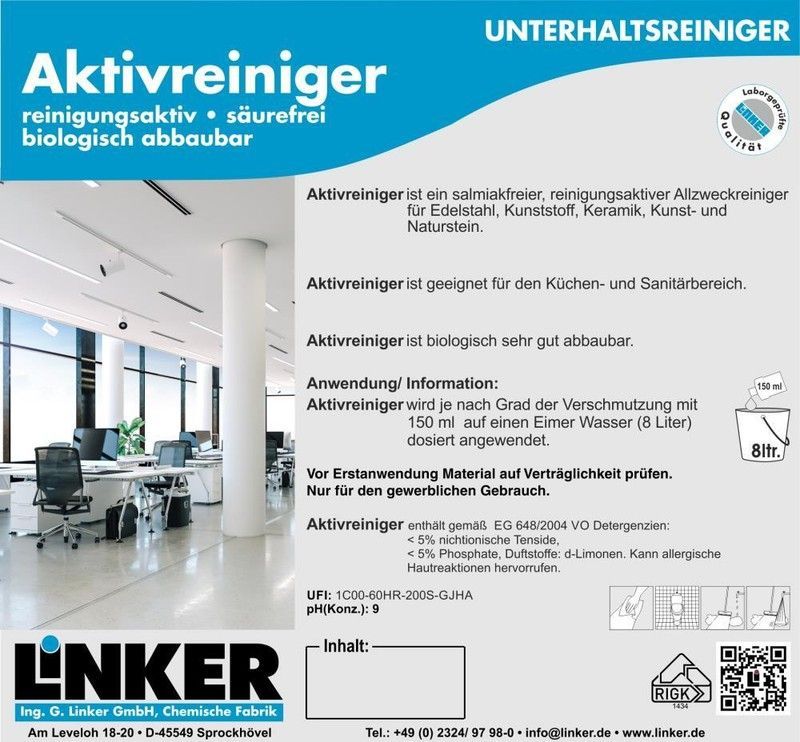 10,1 L Alzweckreiniger Linker Chemie Aktivreiniger Gebäude Küchen Sanitär