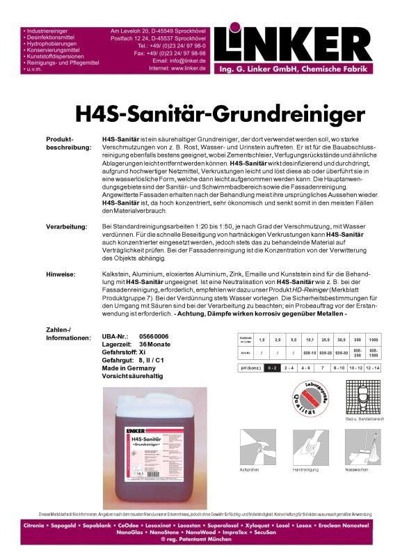 10,1 L H4S-Sanitär-Grundreiniger Linker Chemie