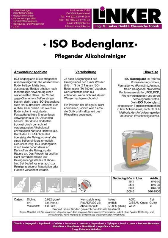 10,1 L Linker Chemie ISO Bodenglanz Alkoholreiniger mit Frischeduft
