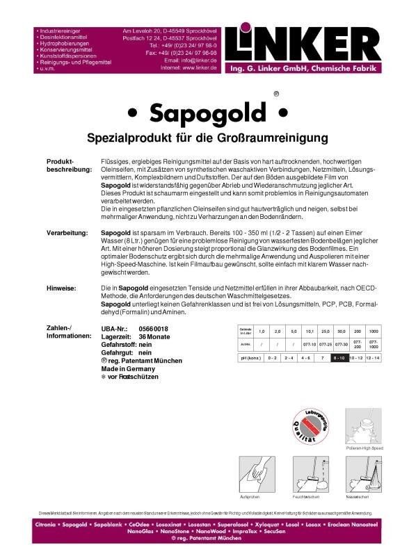 10,1 L Sapogold Goldseife Wischpflege Linker Chemie