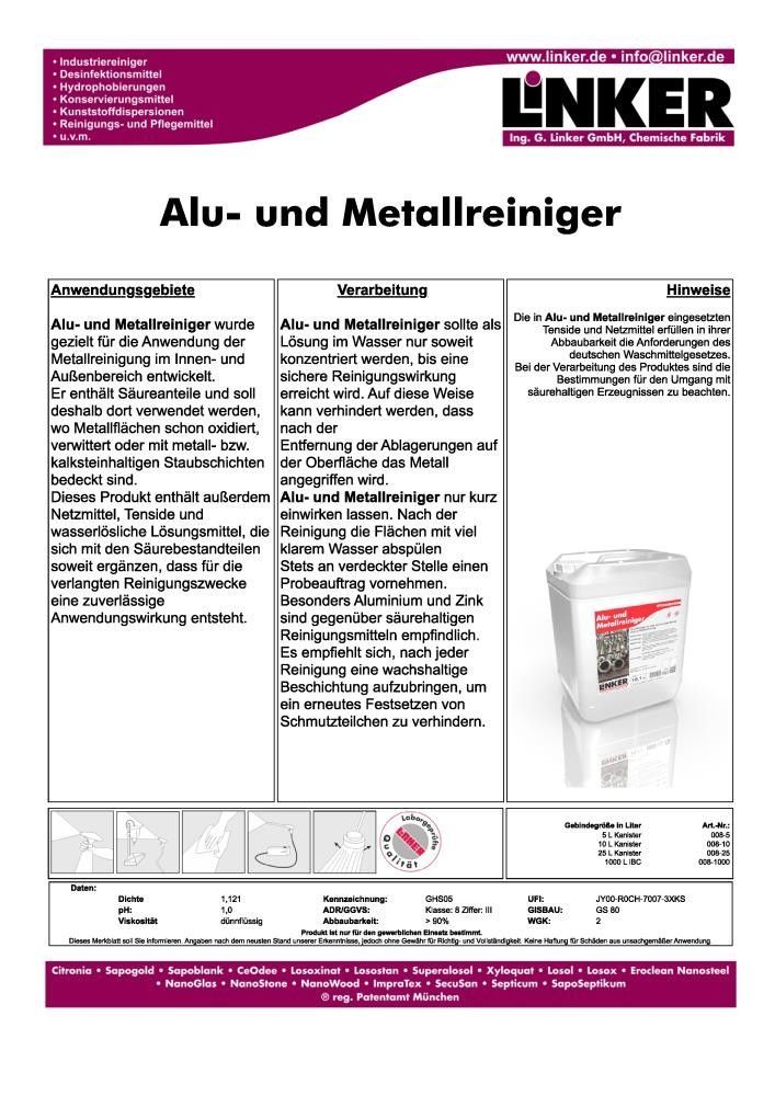 Hochwirksamer Reiniger für Aluminium und Metalle mit Oxid und Schmutzentfernung
