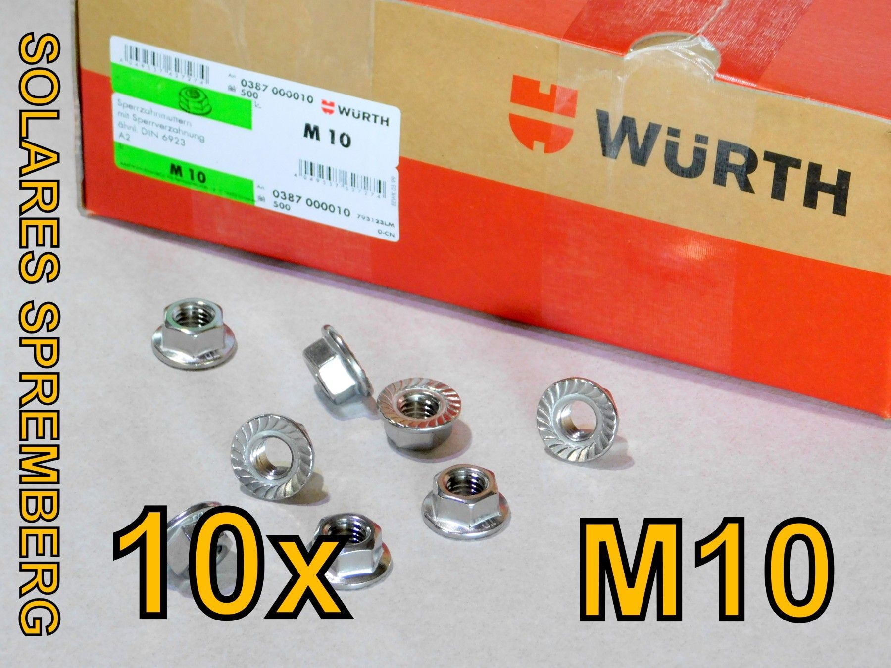 10-100x M10 SW15 Sechskantmuttern Flansch und Sperrverzahnung Edelstahl A2 DIN 6923