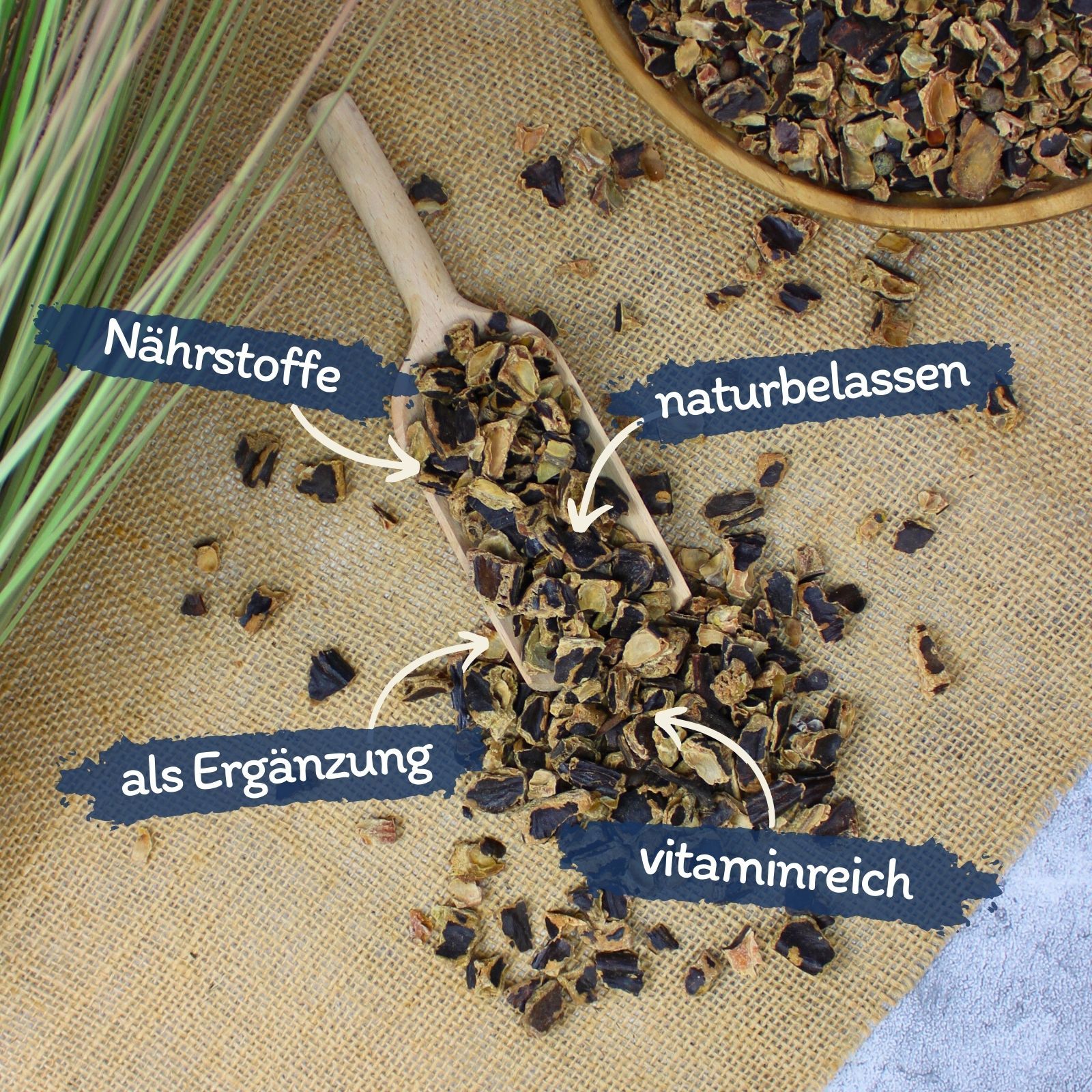 In dem gelieferten Johannisbrot befinden sich Holzstücke sowie kleinere und größere Steine (ca. 2,5 cm)! Das ist für mich Körperverletzung! Das Produkt kann ich nicht weiterempfehlen!