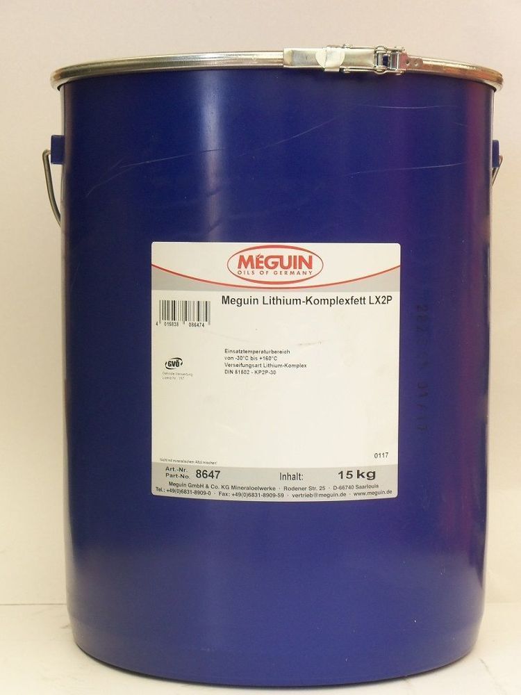Racingteam verkauft Meguin Lithium Komplexfett LX2P im 15 kg Eimer . Zur Langzeitschmierung hochbelasteter Wälz- und Gleitlager mit erhöhten Lagertemperaturen und extremen Druckbelastungen Flächenpressungen . Informationen zur Altölverordnung Als Händler sind wir im Zusammenhang mit dem Vertrieb von