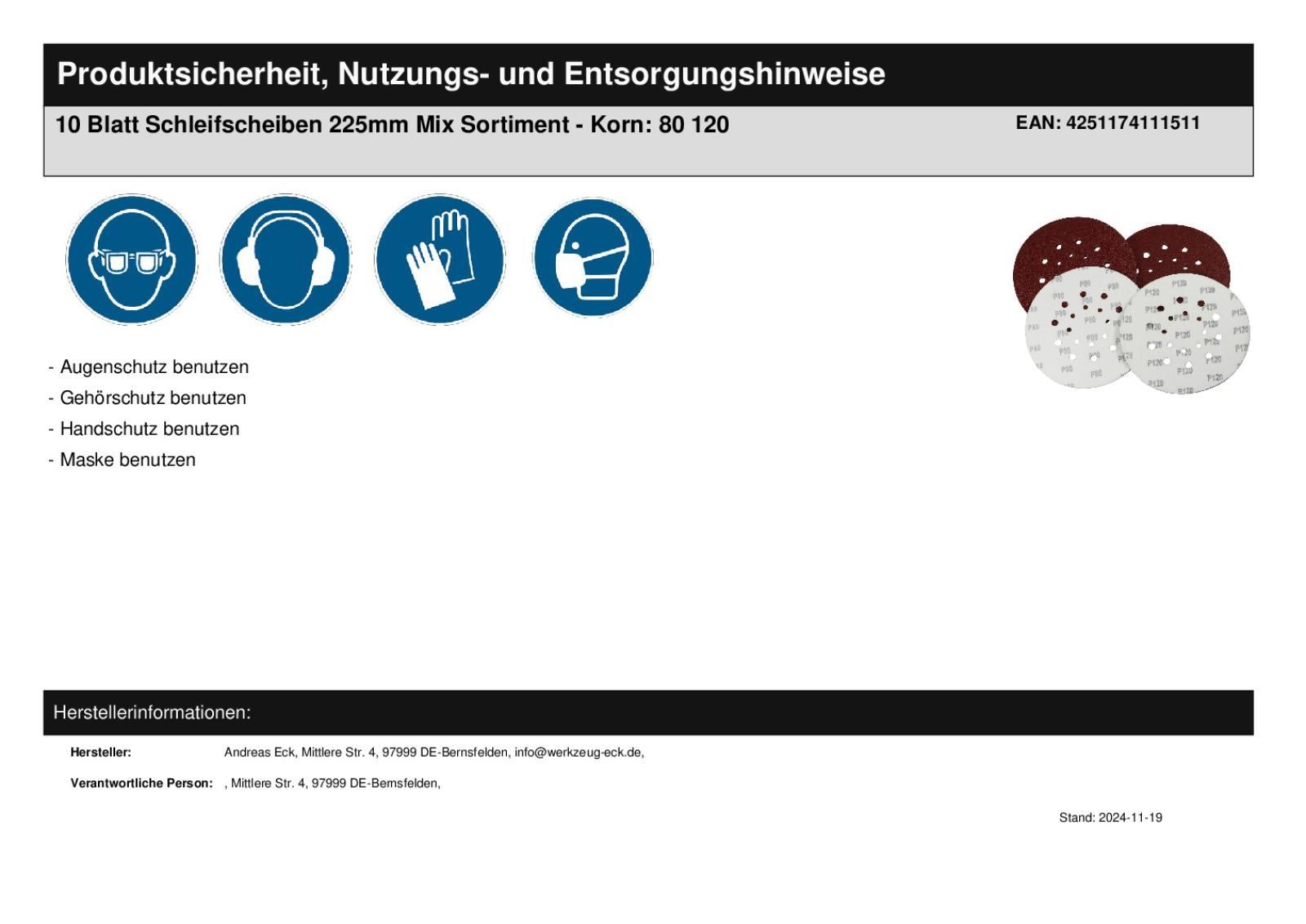 10 Blatt Klett Schleifscheiben 225 mm Korn 80, 120, Trockenbau Deckenschleifer