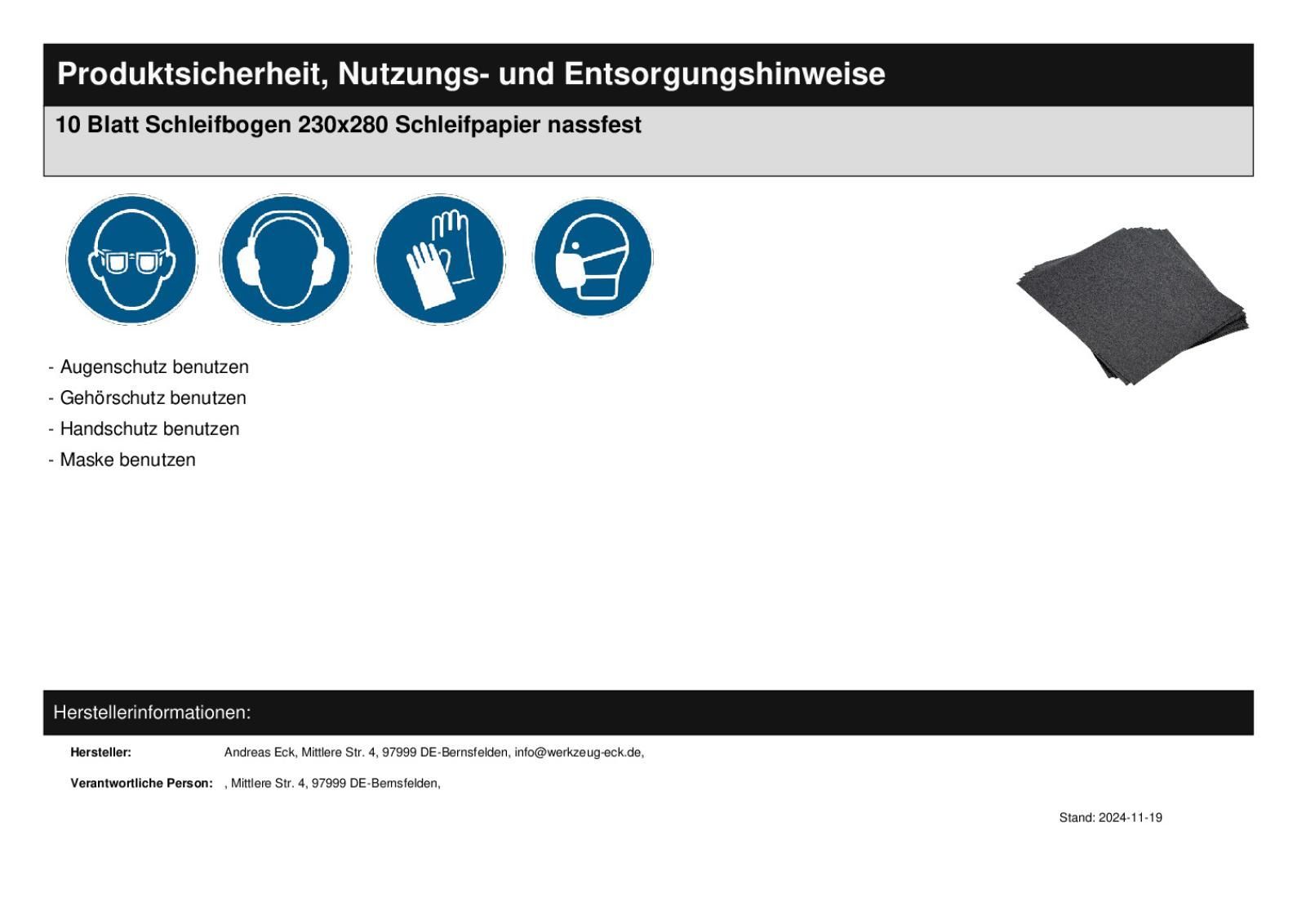 10 Blatt Schleifpapier Bogen 230 x 280 mm nassfest für Holz und Metall